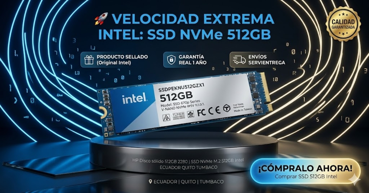 Transforma tu equipo con el HP Disco sólido 512GB 2280 | SSD NVMe M.2 512GB Intel ECUADOR QUITO TUMBACO. Velocidad extrema Intel para arranques inmediatos y máximo rendimiento profesional.