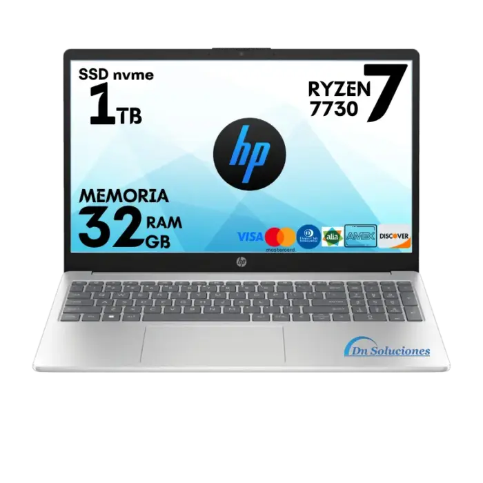 ¿Buscas el máximo rendimiento para tu trabajo, estudios o entretenimiento? La Laptop HP Ryzen 7 7730U de Dn Soluciones es la elección perfecta. Equipada con un potente procesador AMD Ryzen™ 7, 32GB de RAM y un ultrarrápido SSD de 1TB, esta laptop está lista para cualquier desafío.